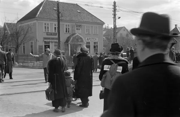 krigsutbrudd, mennesker, flukt, trafikkpoliti, Vinderen stasjon, Vinderen apotek, villabebyggelse
