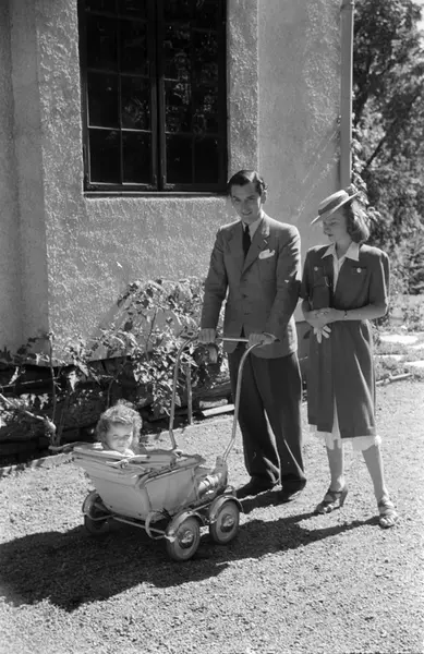 mann, kvinne, ektepar, skuespillere, barnevogn, barn, bygård