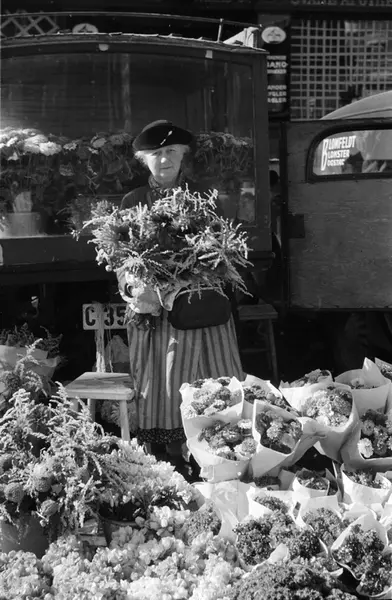 torg, kvinne, torgkone, blomster, torghandel