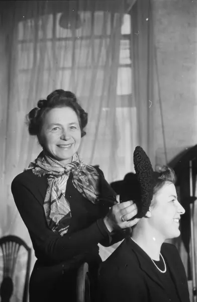 Modist Gjertrud Bjørnstad a.s., interiør, kvinner, modist, modell, hatt,