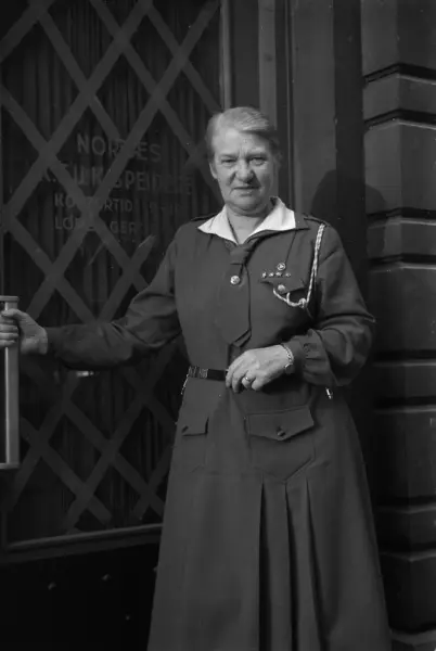 kvinne, speiderleder, stående knefigur, dør til Norges KFUK-speidere