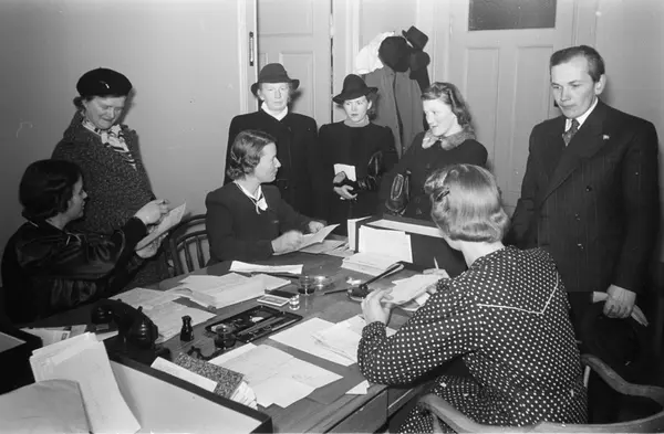 Kommunens tekstilkontor, interiør, kvinner, mann