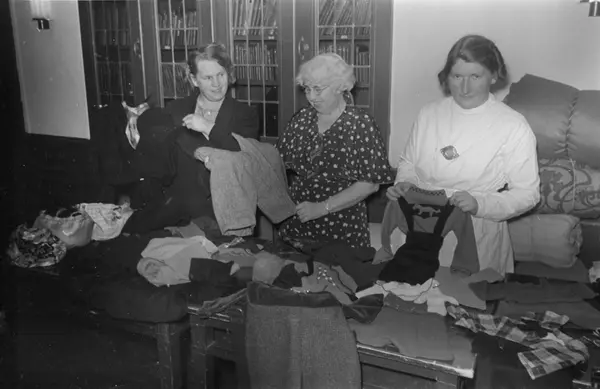 Nasjonalhjelpen, kvinner, sortering og pakking av klær