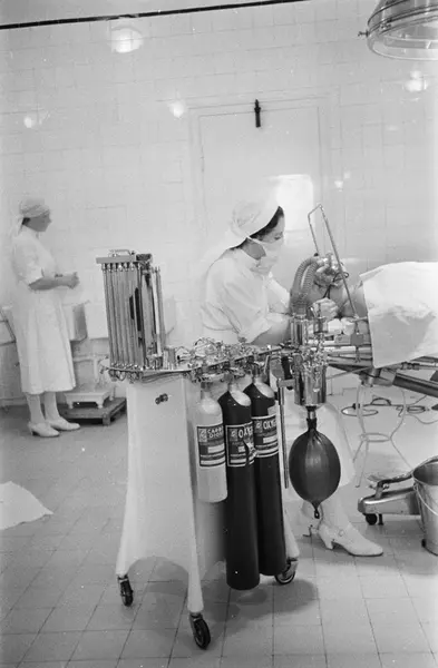 Røde Kors Klinikk, interiør, operasjonsstue, forberedelse til operasjon, lege, pasient, anestesi