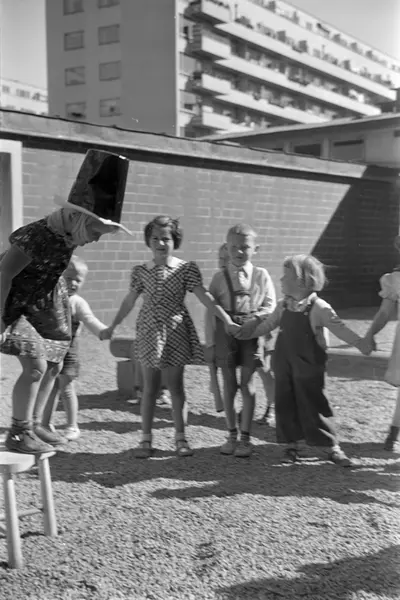 barnehage, lekeplass, barn, lek, boligblokk