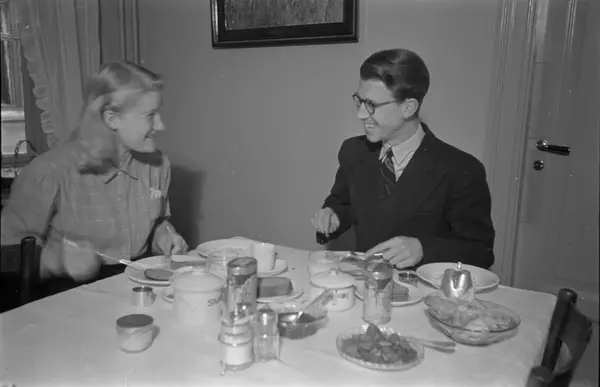 Korens pensjonat, interiør, spisestue, mann, kvinne, frokostbord