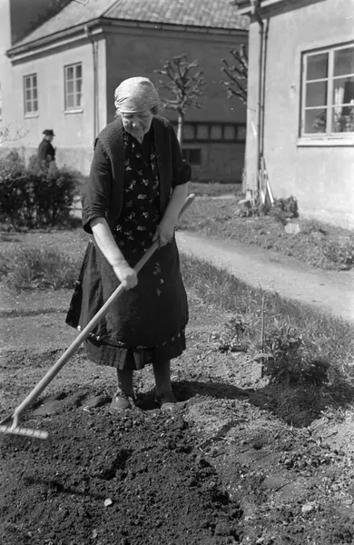 Saugbanken stuer, aldersboliger, hage, kvinne, dyrking av grønnsaker