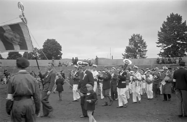 Frogner stadion, arrangement for barn etter folketoget, musikkorps