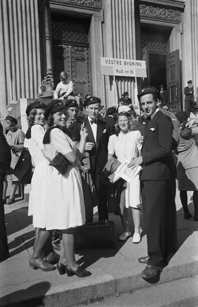 Universitetet, plass, kvinner, menn, studentluer, immatrikulering