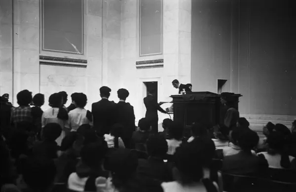 Universitetet, interiør, Aulaen, kvinner, menn, studenter, immatrikulering