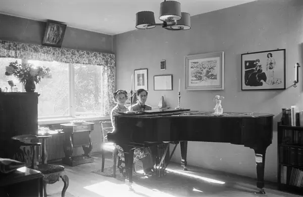 bolig, interiør, stue, mann, kvinne, ektepar, pianister, flygel
