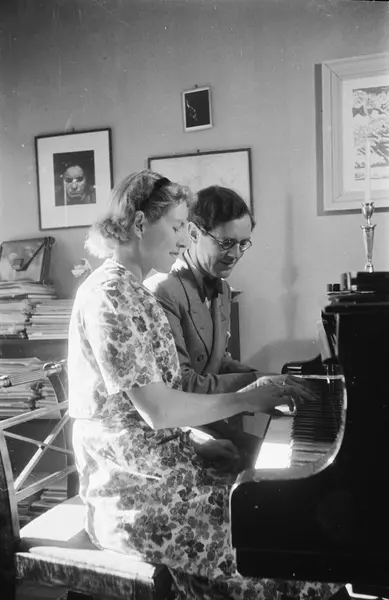 bolig, interiør, stue, mann, kvinne, ektepar, pianister, flygel