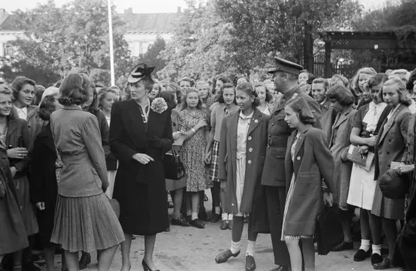 Nissens Pikeskole, skolegård, kronprinspar, prinsesser, første skoledag, jenter, medlelever