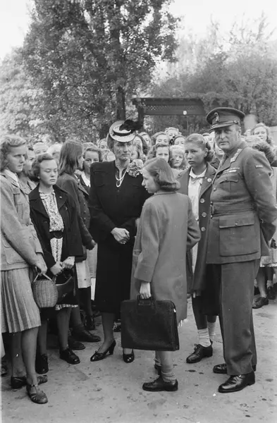 Nissens Pikeskole, skolegård, kronprinspar, prinsesser, første skoledag, jenter, medlelever