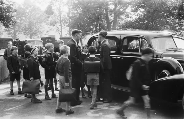 Smestad skole, skolegård, gutter, prins, medelever, bil, menn