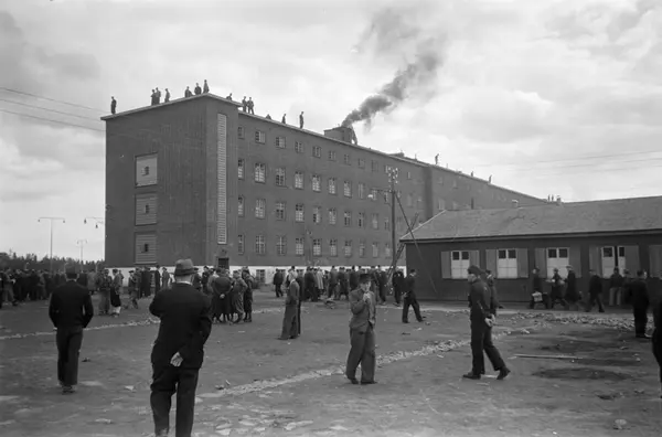 Grini fangeleir ved løslatelsen av fangene.