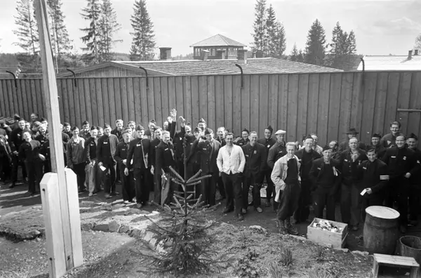 Grini fangeleir, menn, fanger, plankegjerde, piggtråd, brakke