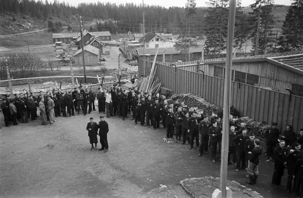 Grini fangeleir, menn, fanger, oppstilling, plankegjerde, brakke