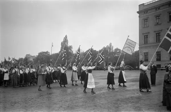 17. mai-feiring, 17. mai-tog, kvinner, flagg, fane: Statens kvinnelige industriskole, Slottet
