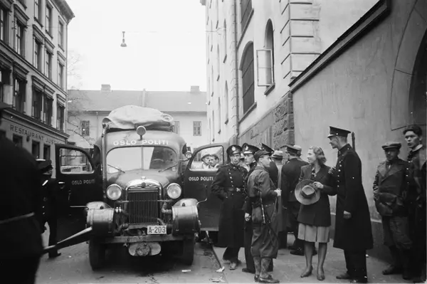 Ved fangenes løslatelse fra Møllergata 19.