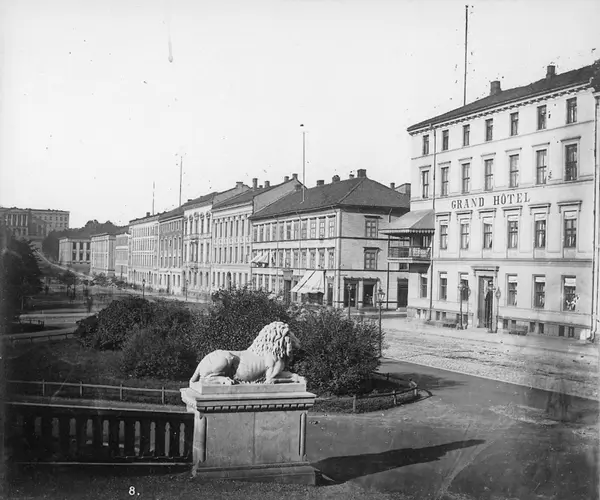 løveskulptur, park, gateløp, Grand Hotel, forretningsgårder, Slottet