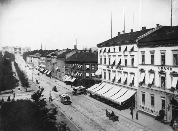 gateløp, Grand Hotel, forretningsgårder, hestekjøretøyer, hestesporvogn, mennesker, Slottet