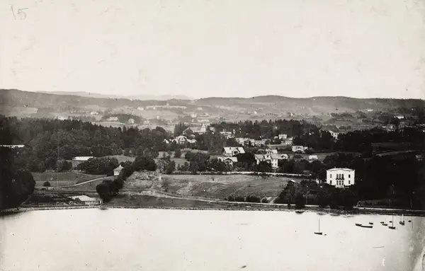 utsikt nord, fjord, strand, kulturlandskap, løkkebebyggelse, Frogner Hovedgård, Schafteløkken, Nøisomhed løkke, Otium løkke, Gaustad sykehus