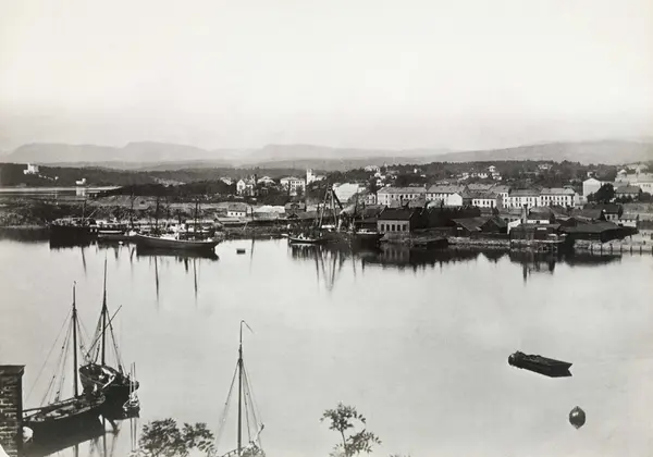 utsikt, fjord, seilfartøyer, dampskip, Akers mek. Verksted, løkkebebyggelse, Observatoriet