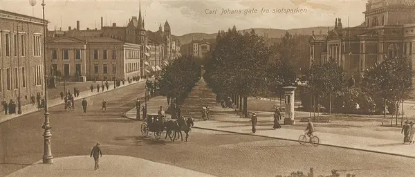 Carl Johans gate fra slotsparken.