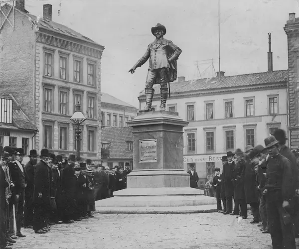 Fra avdukingen av Kristian IV-statuen på Stortorvet.