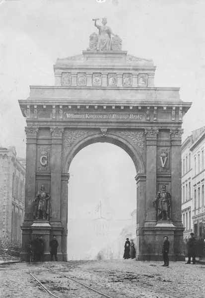 velkomstportal for kronprins Gustav og Victoria, Slottet, Stortingsbygningen, bygårder, mennesker