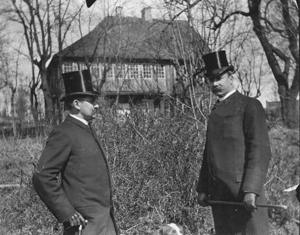 Frydenlund løkke, hage, menn, flosshatter, spaserstokker