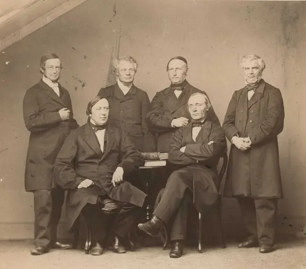 Bak fra venstre: J.J. Tandberg, A.C. Anderssen, A.C. Tannæs, H. Elstrand. Foran fra venstre: J.S. Munch, O.L. Domaas