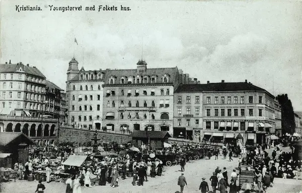 Kristiania. Youngstorvet med Folkets hus.
