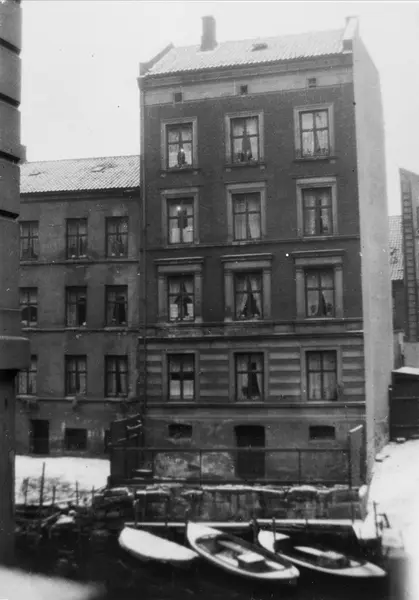 Hushjørnet i venstre bildekant er Christian Krohgs gate 28 ved Hausmanns bru. Gårdene er bakgårdene til Lakkegata 26 (t.v.) og 28 (t.h.).