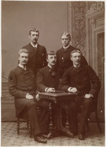 Stående fra venstre: A.W. Knagenhjelm, verkseier Knud Dahl. Sittende fra venstre: generalkonsul Chr. Hauge, høyesterettsadvokat Frantz Melhus, overrettssakfører Iver Lyche.