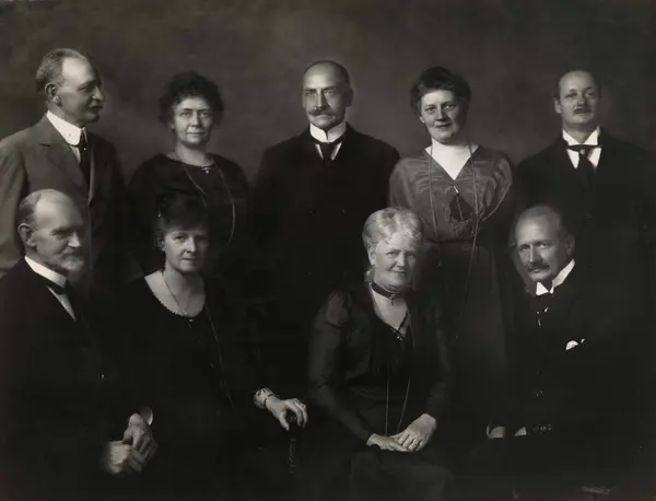 Fra v. øverst: Ludvig Sohlberg (1859-1929), Ragna Sohlberg (1866-1945), Harald Sohlberg (1869-1935), Dagny Sohlberg (1868-1955), Thorleif Sohlberg (1878-1958). Fra v. nederst: Ukjent, Sigrid Sohlberg Linthoe (1873-1952), Gyda Sohlberg Phragmén (1864-1931), Johan Wilhelm Sohlberg (1871-1967).
