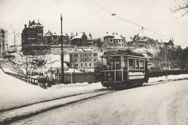 gate, trikk, snø, villabebyggelse, bygårder