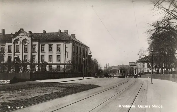 gateløp, fortau, Kong Oscars Minde, mennesker, trikk, gjerde, park