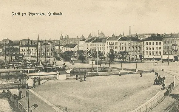havn, båter, mennesker, hestekjøretøyer, gateliv, bygårder, Vestbanestasjonen