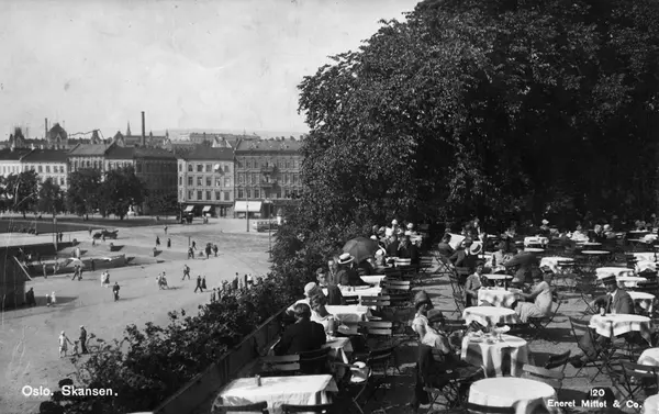 Skansen restaurant, friluftsrestaurant, mennesker, plass, bygårder