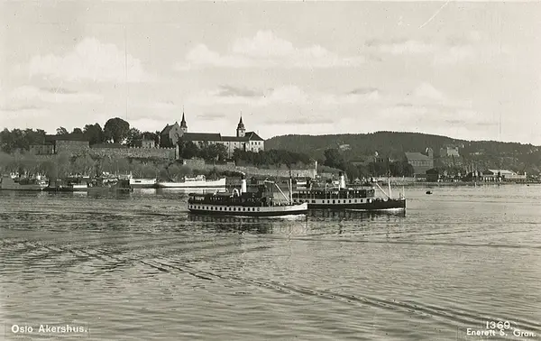 fjord, dampbåter, fjordbåter, havn, Akershus festning, kornsilo, ås, Sjømannsskolen