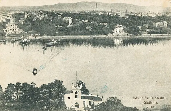 Oscarshall, kavalerbygningen, utsikt, fjord, båter, villabebyggelse