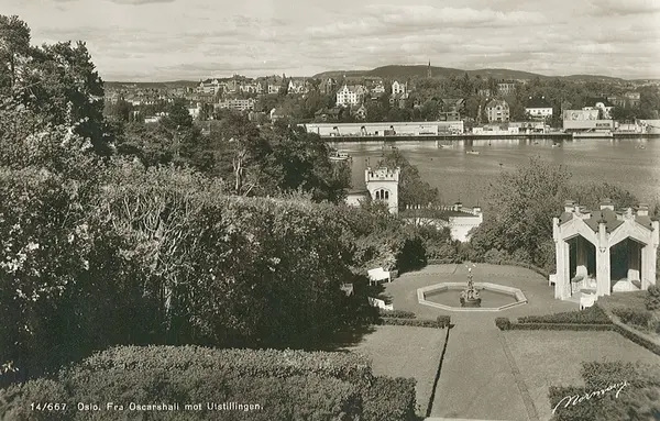 Oscarshall, utsikt, park, hage, røkepaviljong, fontene, kavalerbygning, fjord, villabebyggelse, Vi kan-utstillingen