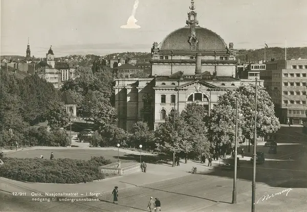 Oslo. Nasjonalteatret - i forgr. nedgang til undergrunnsbanen.