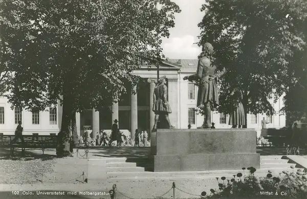 Oslo. Universitetet med Holbergstatuen.