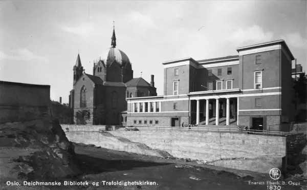 Oslo. Deichmanske Bibliotek og Trefoldighetskirken.