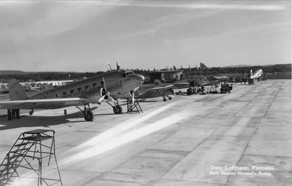 Bildet er fra åpningsdagen av Fornebu den 1. juni 1939. Flyene på bildet er: Douglas DC2 til KLM, PH-AKI, "Kieviet". Fairchild 24 til Wessels flyselskap, LN-EAF. Caproni Ca310, DNL, LN-DAK. Fiesler Fi156 Storch, privat, D-IUGR. Focke Wulf Condor, DAL, OY-DAM, "Dania".