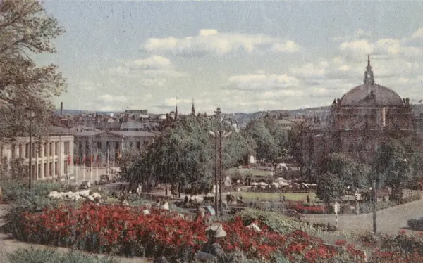 park, blomsterbed, utsikt, Universitetet, Nationaltheatret