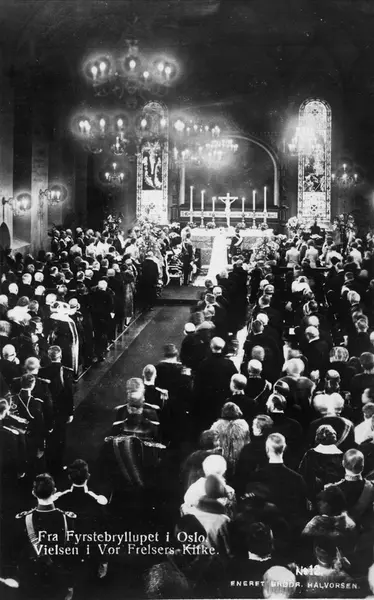 Fra Fyrstebryllupet i Oslo. Vielsen i Vor Frelsers Kirke.